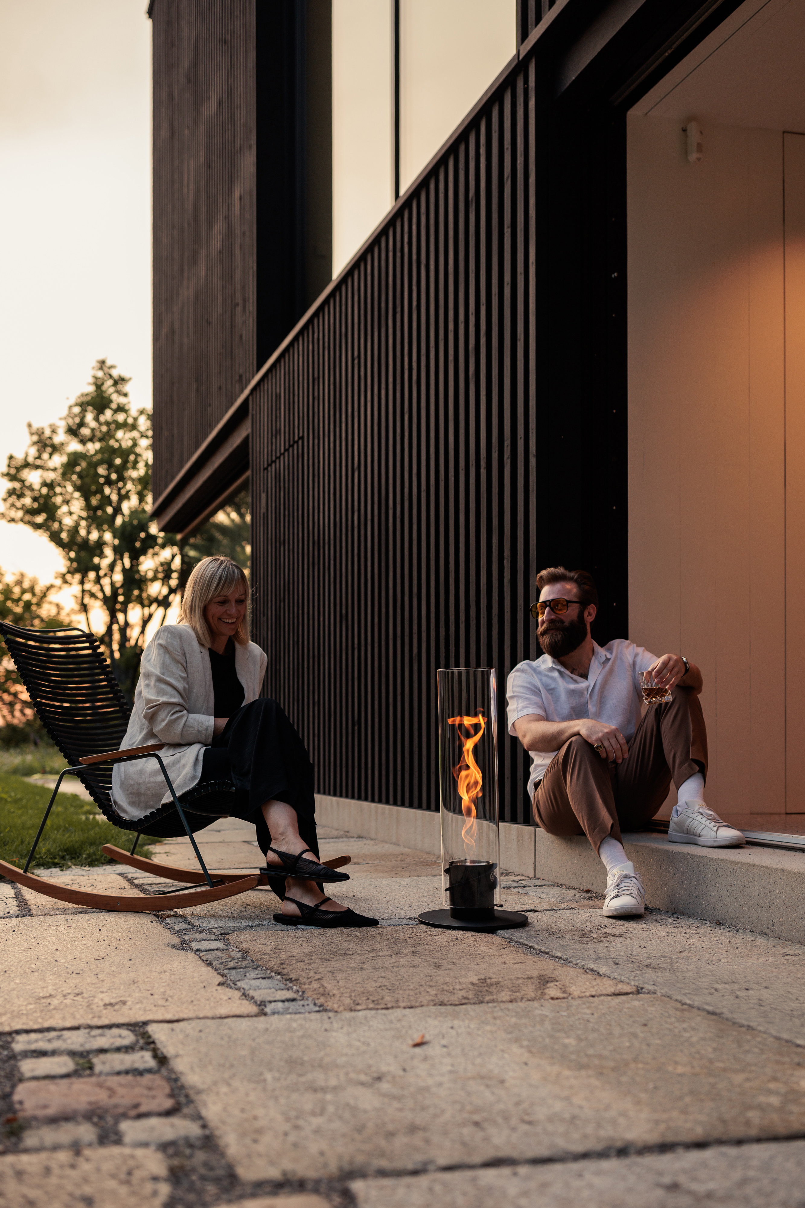 Und noch ein weiteres Detail zeichnet die neue Spin aus: Der integrierte Eco-Ring ermöglicht es, die Flammenhöhe zu regulieren und die Brenndauer damit um 50 Prozent zu verlängern, denn entspannte Stunden mit lodernden Flammen lassen die Hektik des Alltags vor der Tür. Die im Glaszylinder rotierenden Flammen laden zum Hinschauen und Wegträumen im Lichte des Feuerscheins ein.