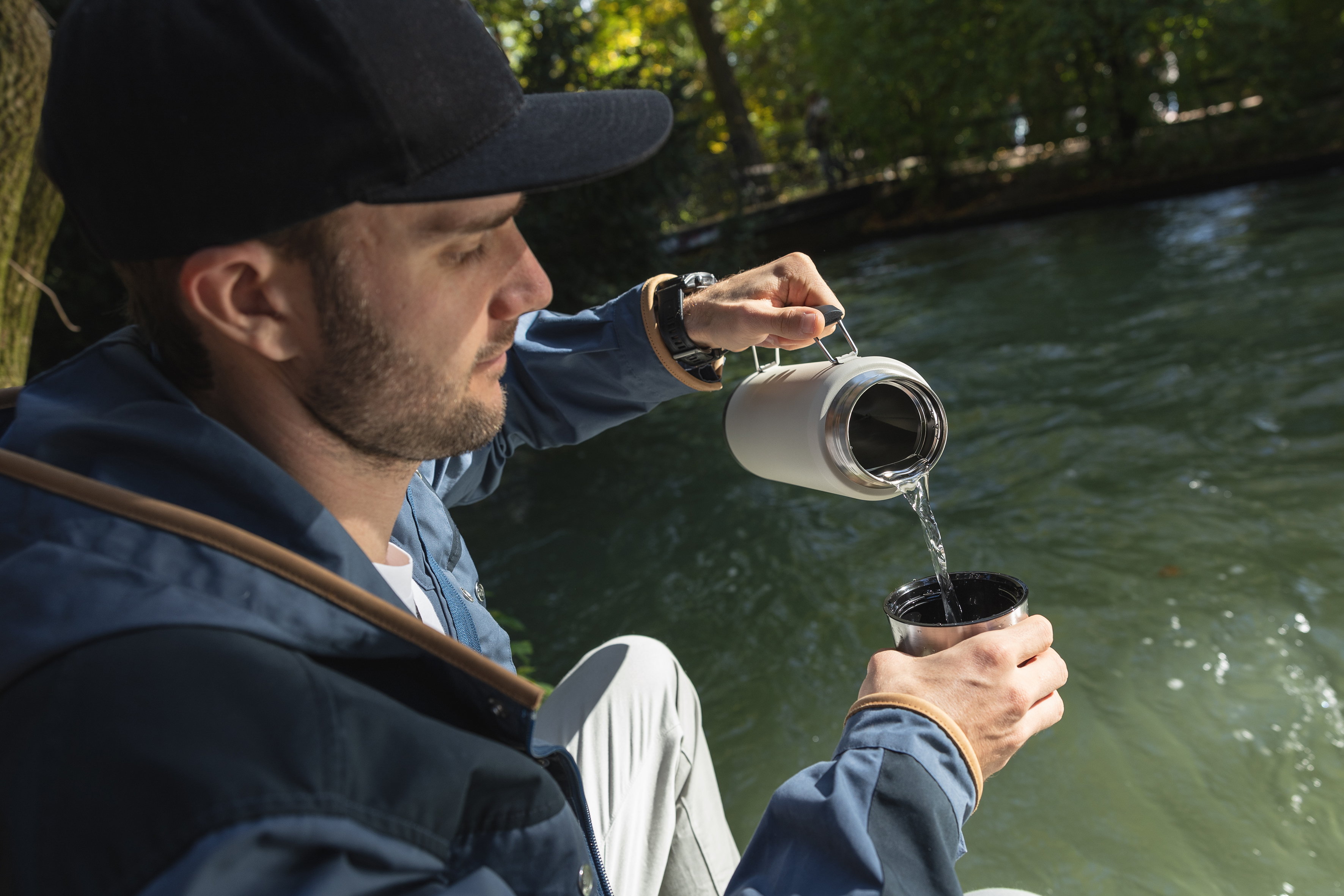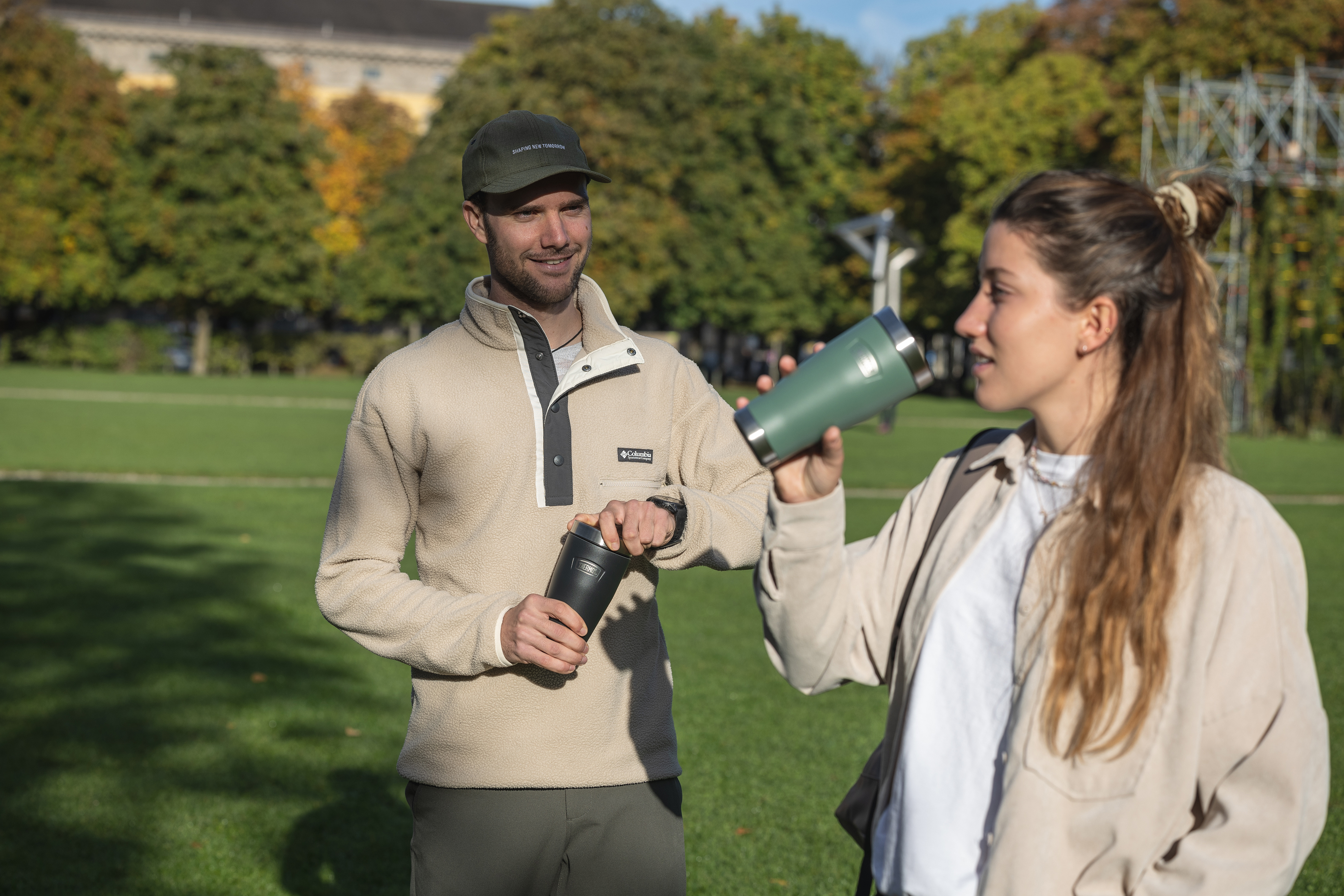 Auch die beiden Icon Beverage Bottles machen das Leben leichter und begleiten zuverlässig zur Arbeit und in die Freizeit. Das kleinere Modell fasst 0,71 Liter Flüssigkeit, hält diese 18 Stunden heiß oder 24 Stunden kalt und lässt sich lässig am Griff transportieren. Wer noch größere Pläne hat, ist mit der Icon Beverage Bottle und 1,2 Liter Fassungsvermögen optimal ausgestattet. Hier bleiben die Getränke bis zu 24 Stunden heiß oder kalt. Zusätzlich gibt es einen Twist & Pour-Deckel mit Becher sowie einen Tragegriff. Beide Isolierflaschen besitzen eine große Öffnung für einfaches Befüllen.