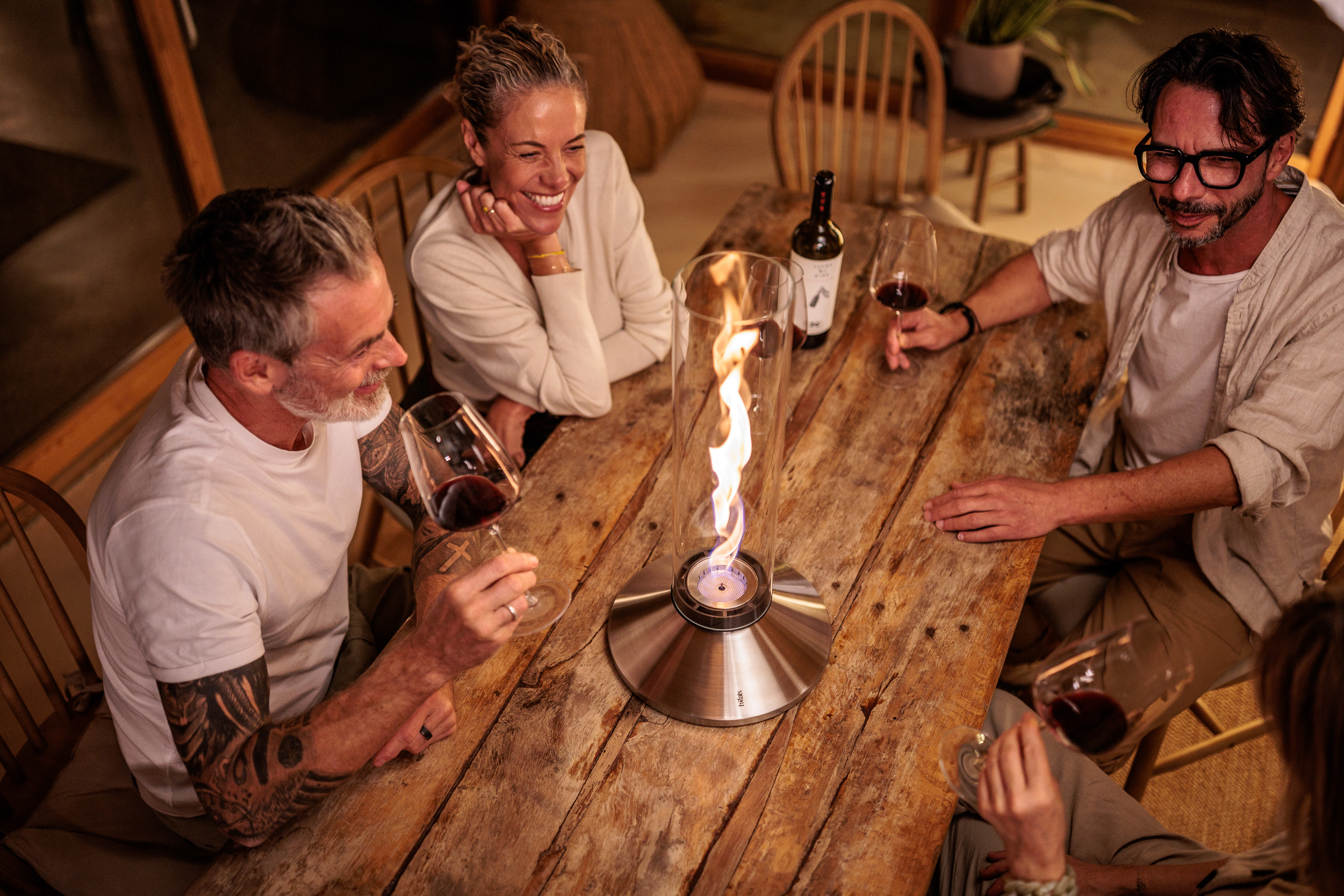 Wo Spin X ist, da entsteht Atmosphäre. Der extra-große Tank bleibt im Inneren verborgen, die Wirkung spürbar: Mit dem Entzünden des höfats Bioethanols und dem Aufsetzen des Glaszylinders aus Borosilikat entfacht die Thermik und der Kamineffekt des Glases treibt den Feuerwirbel zusätzlich an. Dadurch wächst die Flamme und erstreckt sich über die gesamte Länge des Glaszylinders – ganz ohne zusätzliche Energie. Dafür mit viel Ausdauer für besondere Abende, die noch lange bleiben.