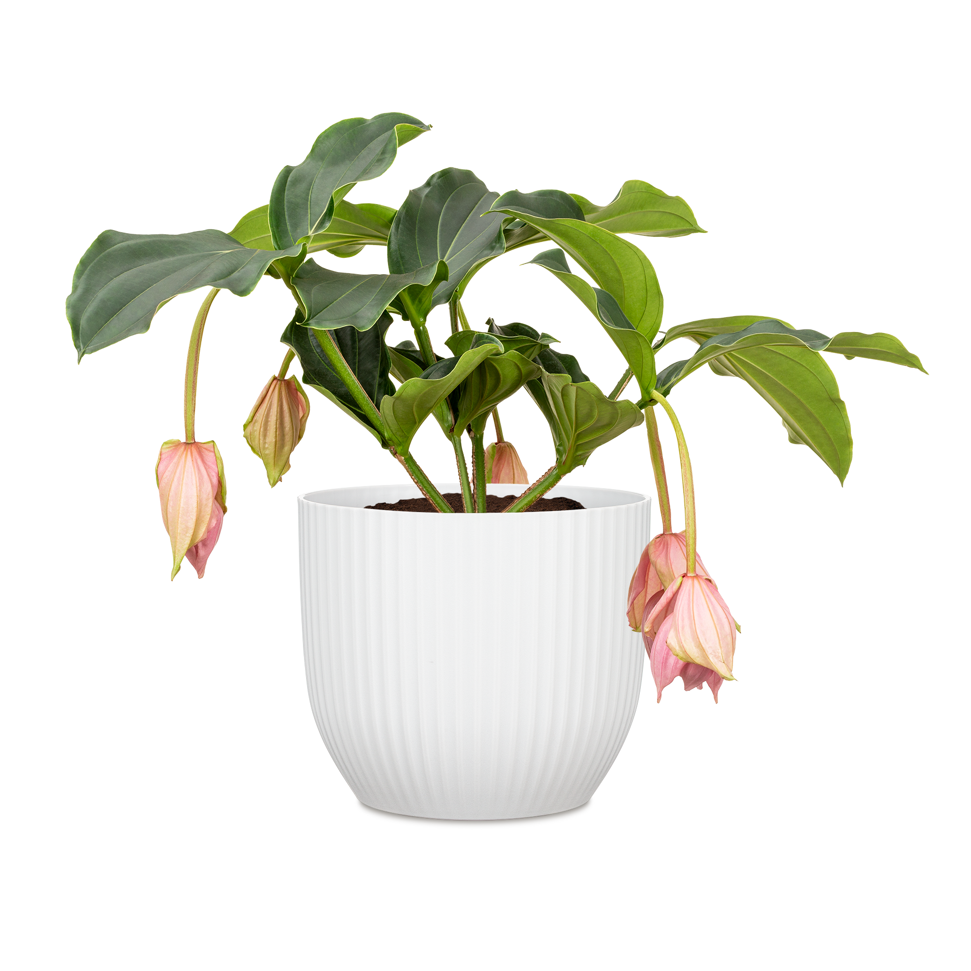 In einem romantischen Ambiente spielen Pflanzen und Übertöpfe eine wichtige Rolle. Nova von Scheurich ist mit der nostalgisch anmutenden Form in den sanften Farbtönen Chalk White, Caramel, Blush Rose und Gentle Green das perfekte Match für Zimmerpflanzen.