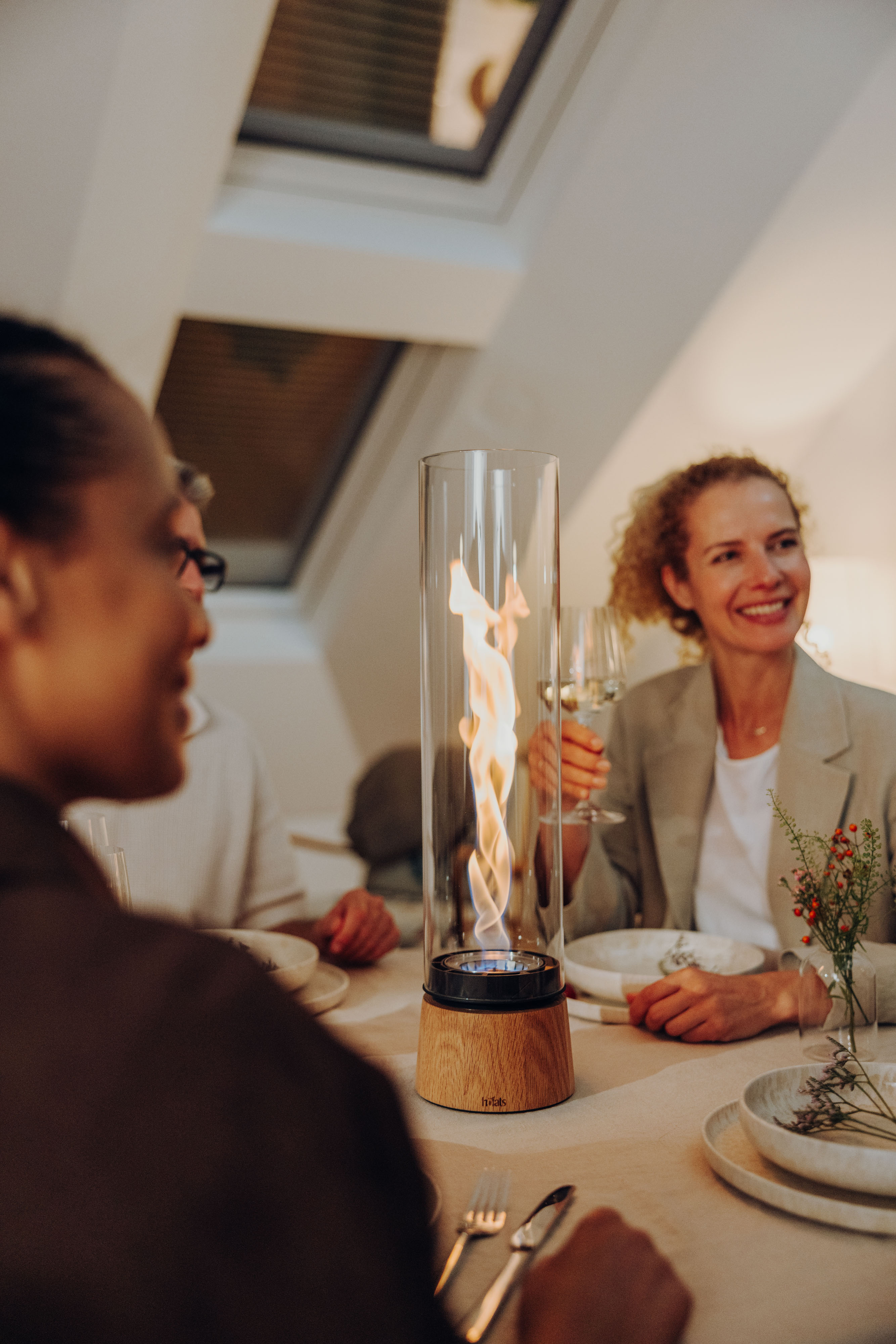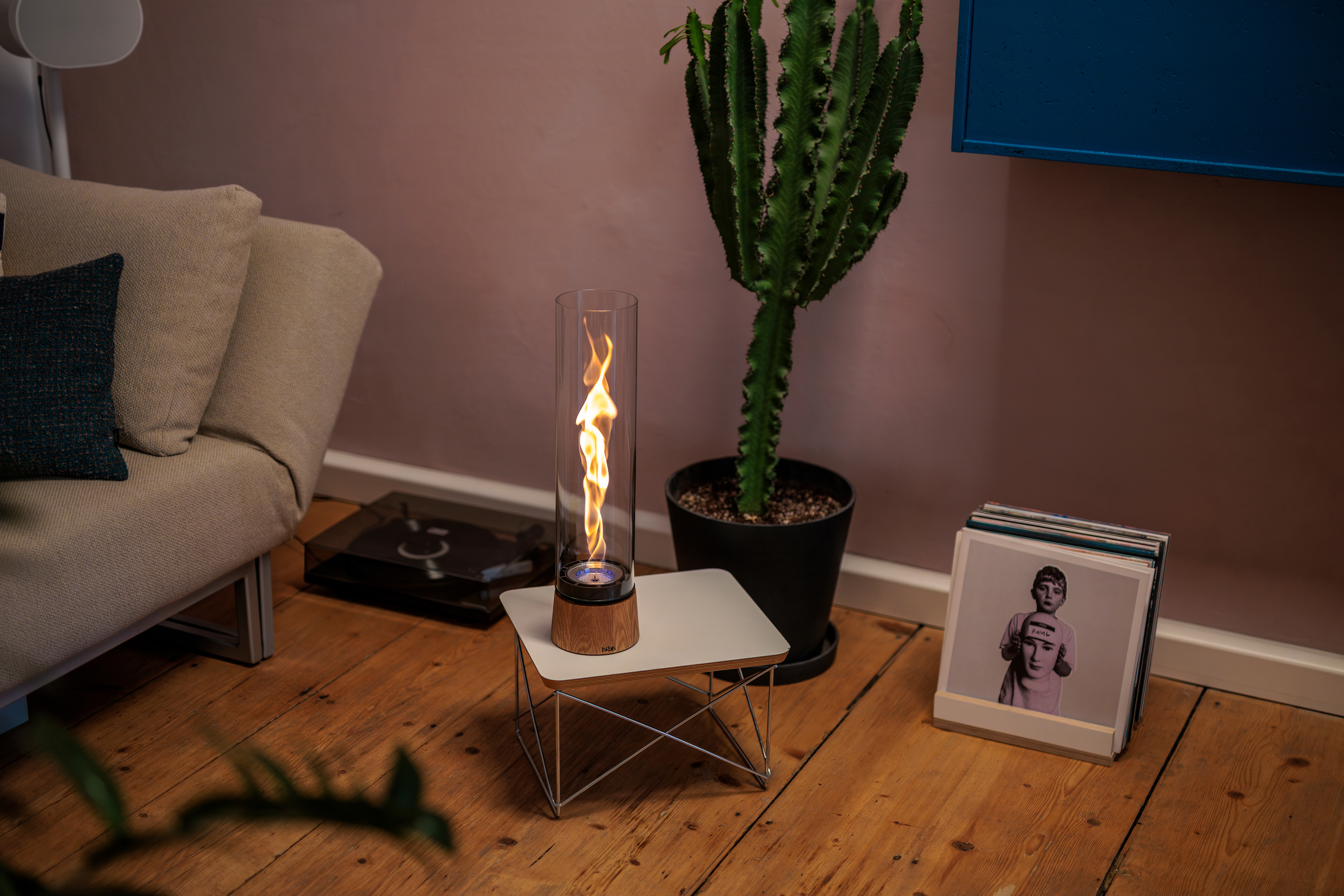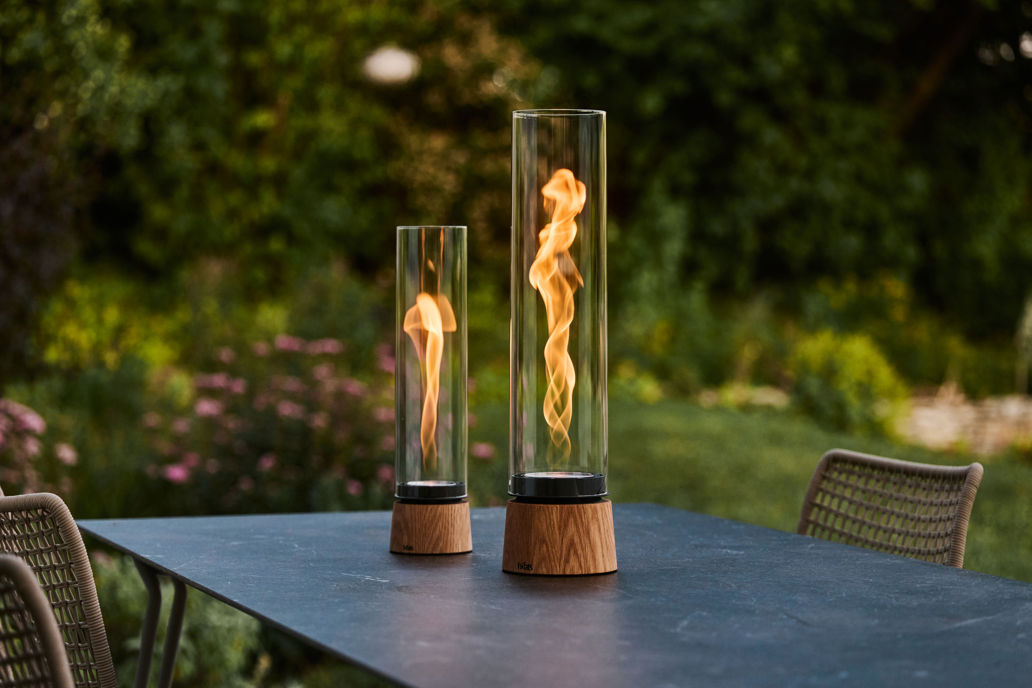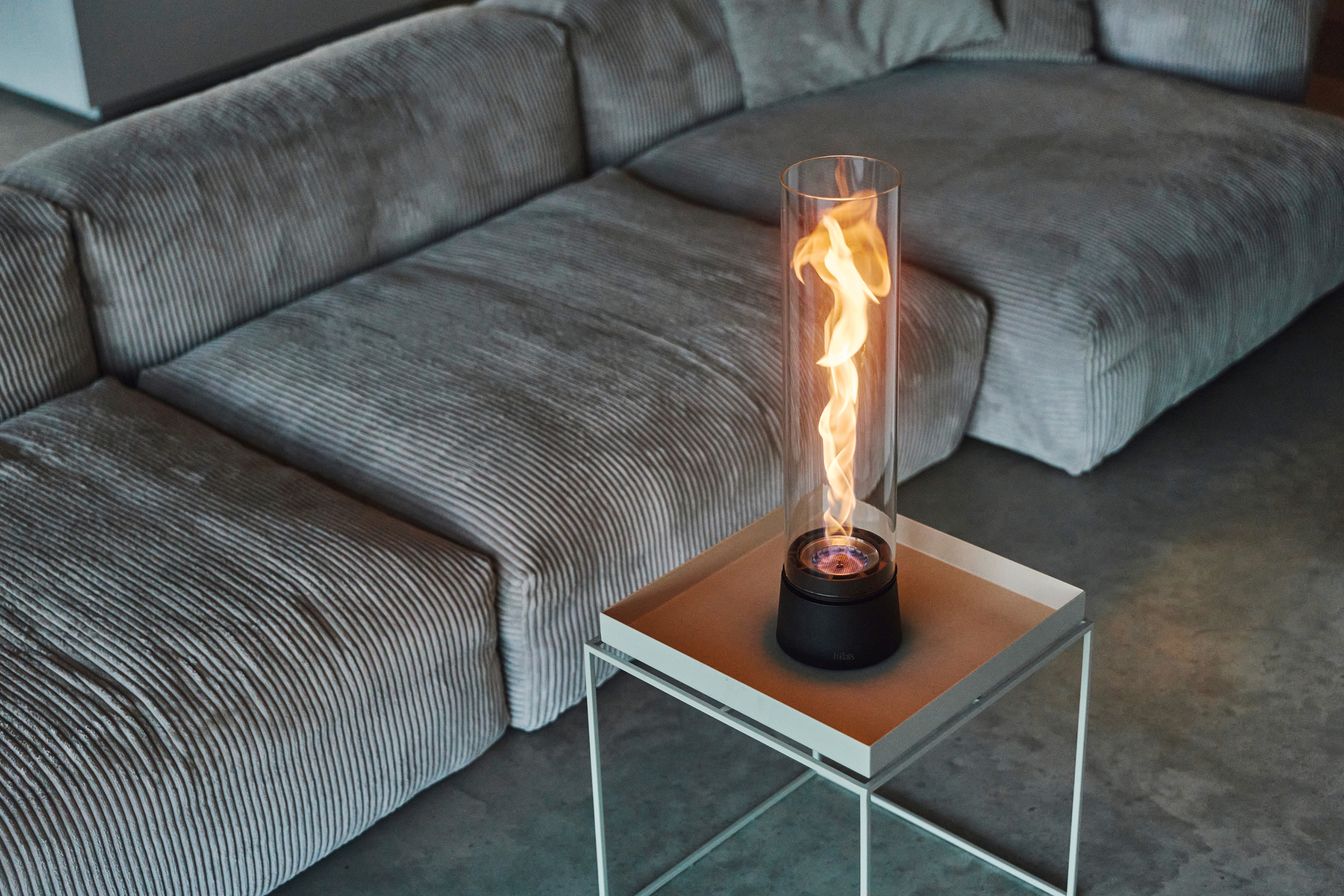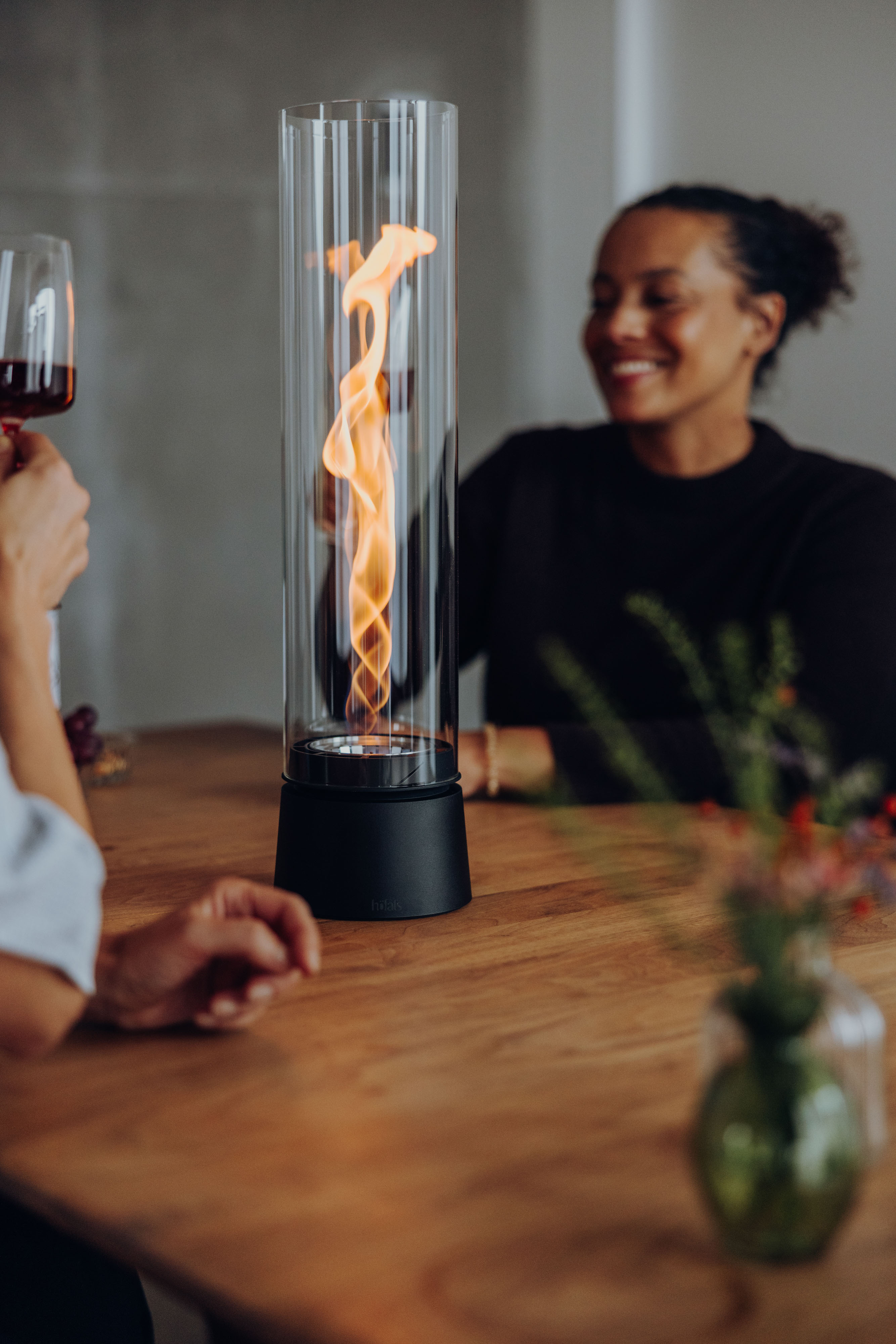 Als Allrounder unter den Lifestyle-Accessoire macht sich Spin air vor einer Naturkulisse im Garten, auf der Terrasse oder dem Balkon ebenso gut wie im Indoor-Bereich. Das lodernde Flammenspiel im hochwertigen Glaszylinder erinnert an eine sich fortwährend wandelnde Skulptur, die über Stunden geruchlos und rauchfrei genossen werden kann. Bei so viel leidenschaftlichem Wirbel bildet die schlanke, geradlinige Form von Spin air den wunderschön kontrastreichen wie sicheren Rahmen für das Feuer.