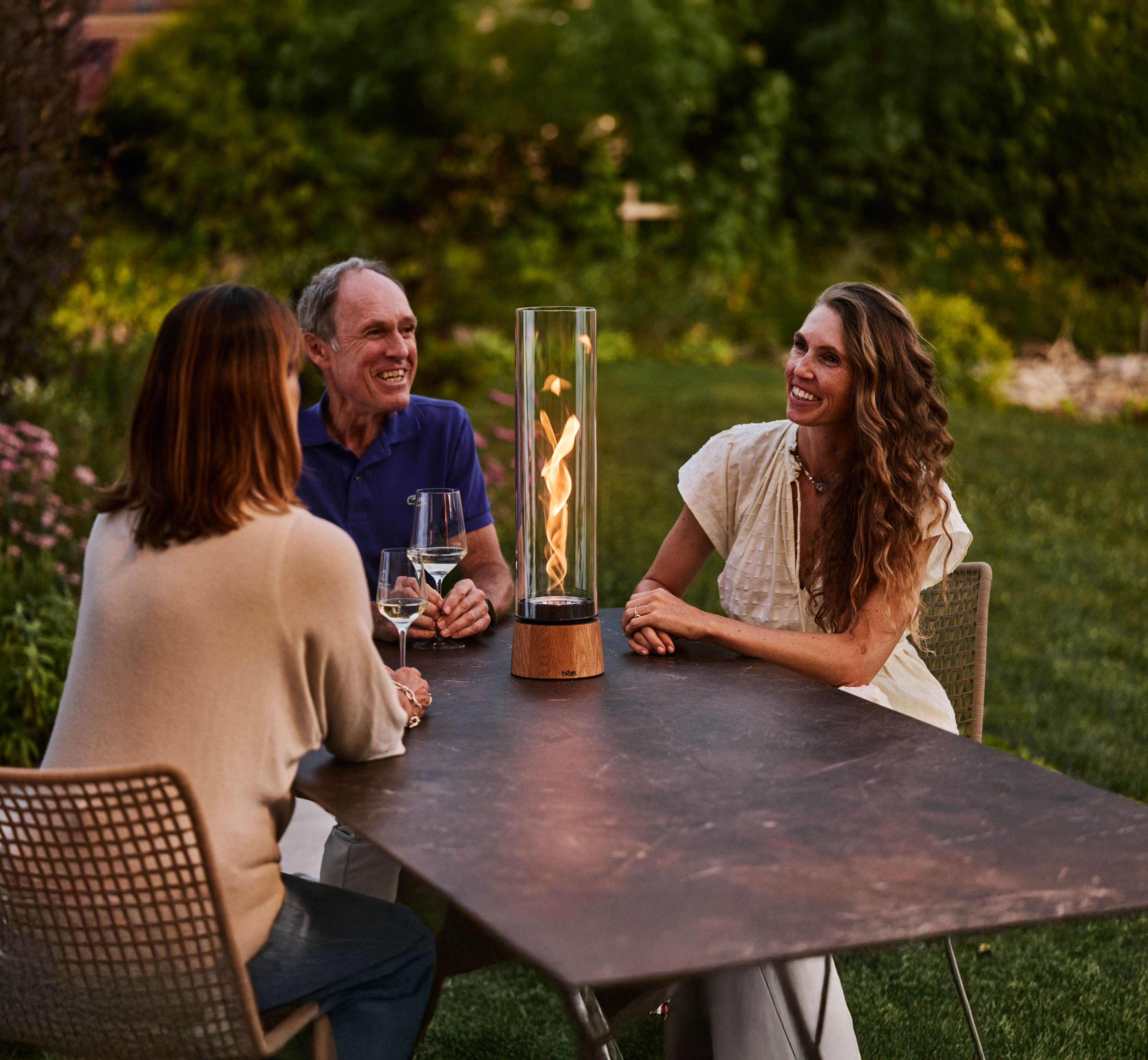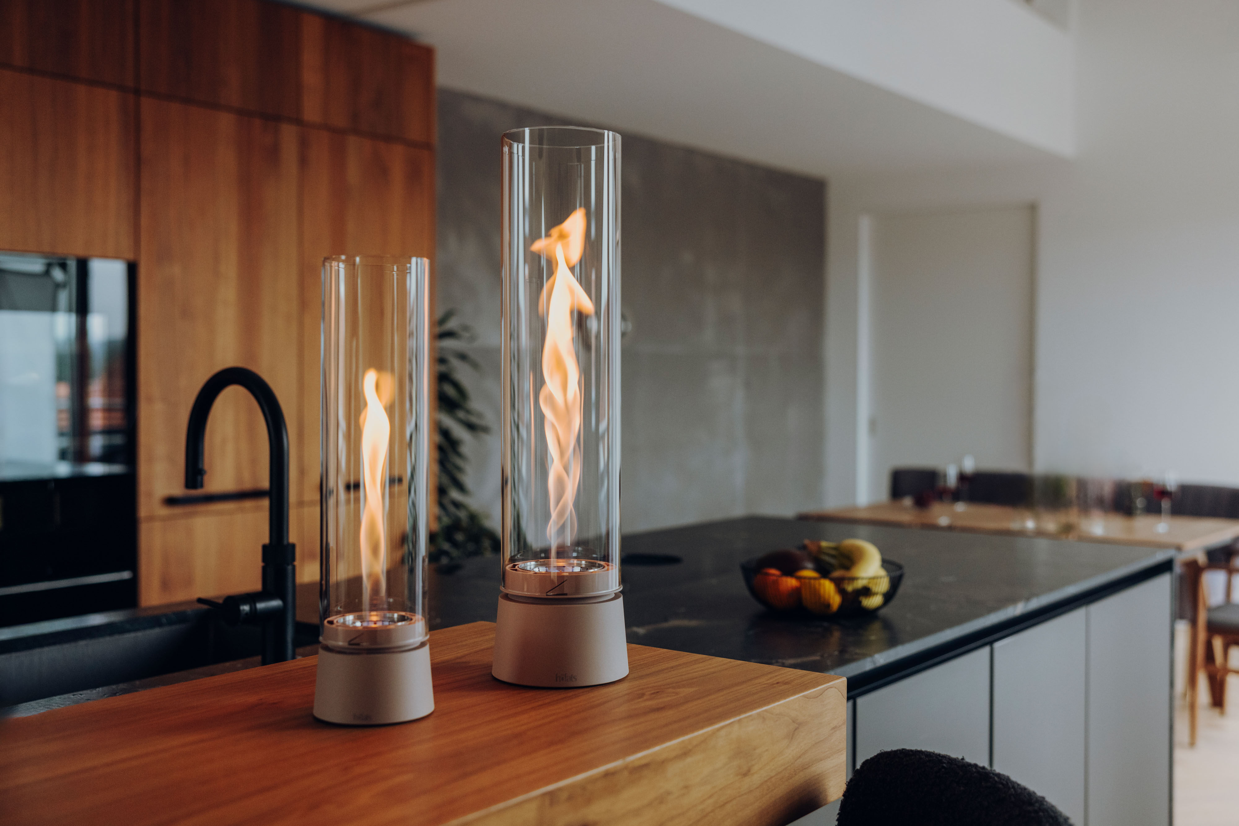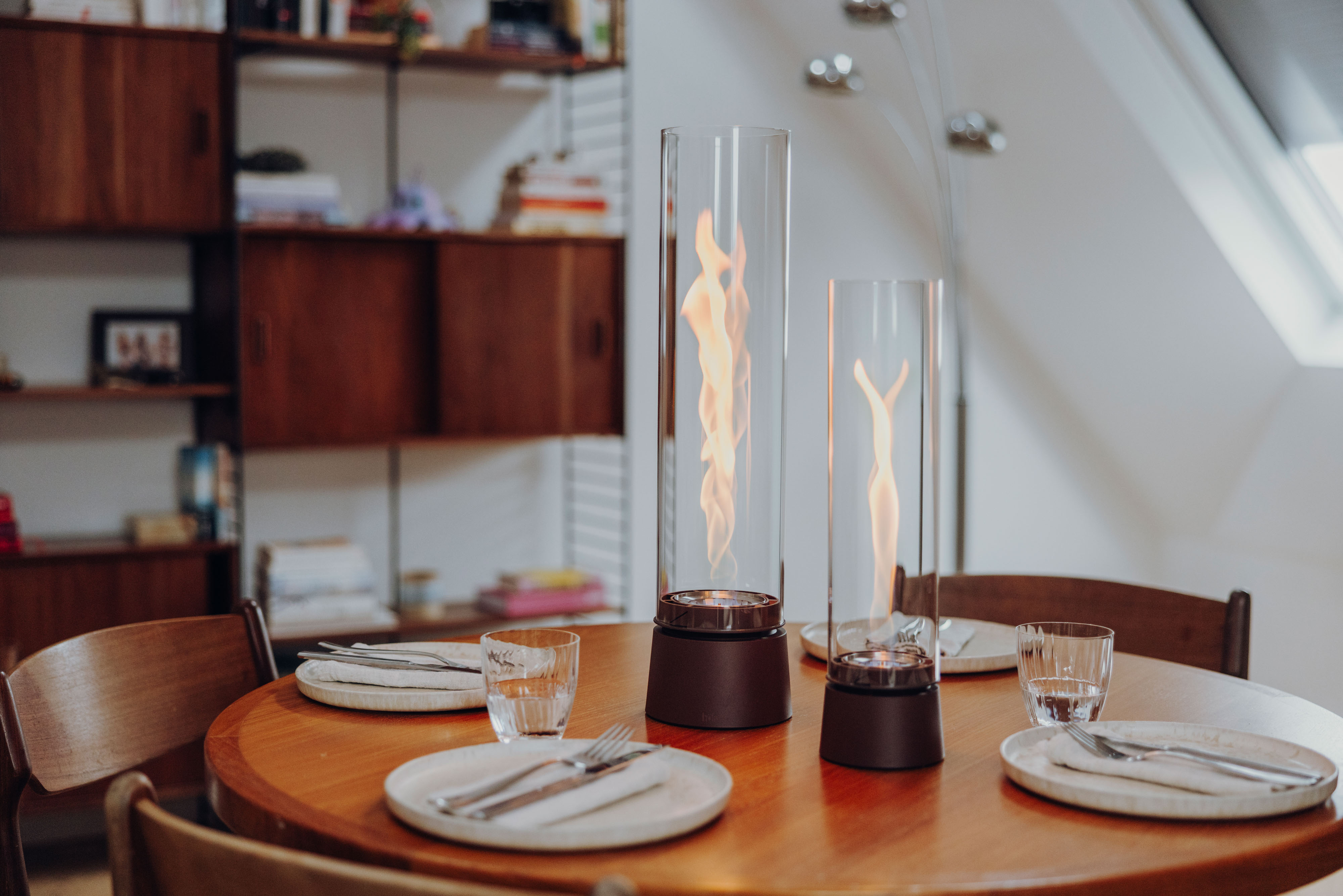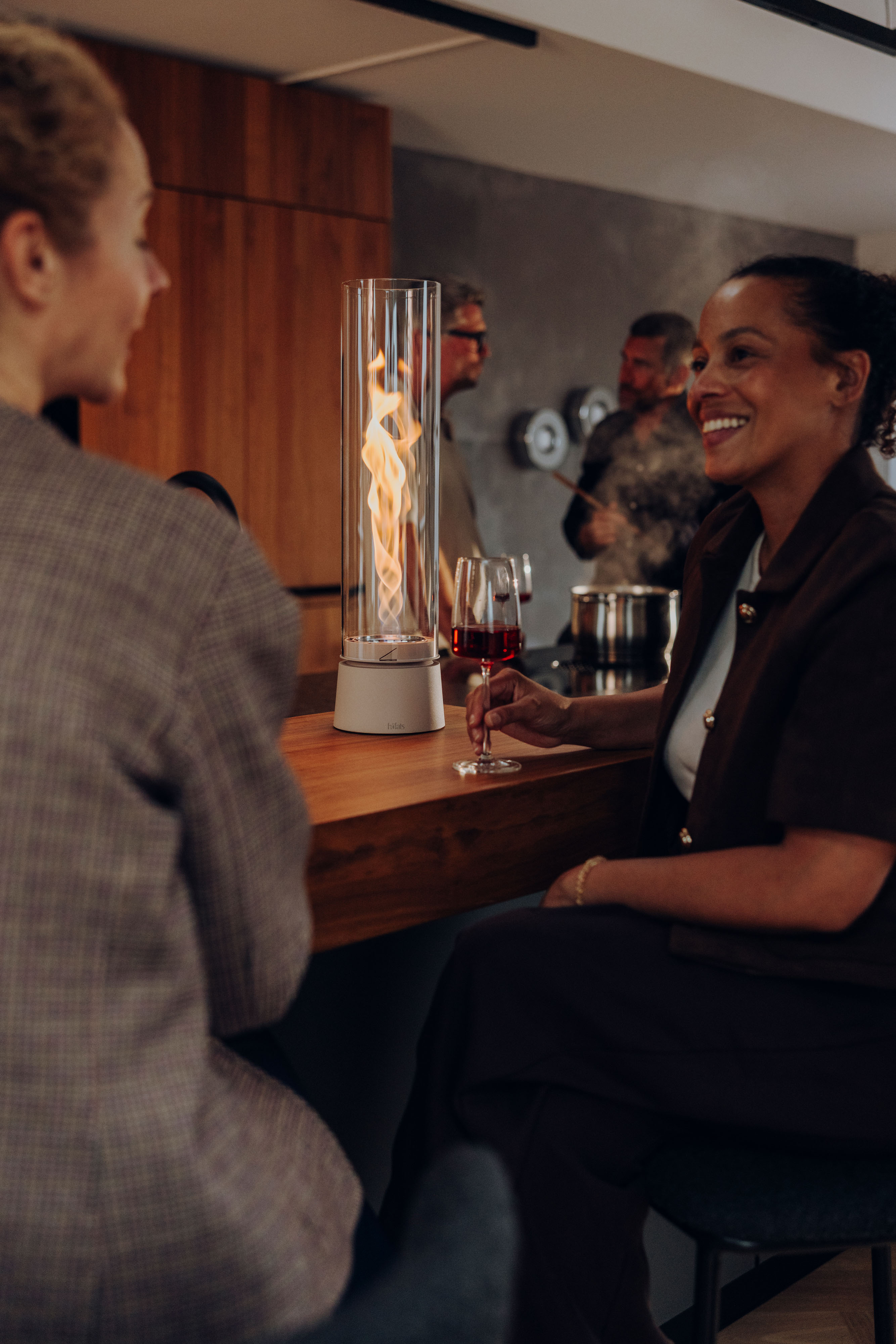 Als Allrounder unter den Lifestyle-Accessoire macht sich Spin air vor einer Naturkulisse im Garten, auf der Terrasse oder dem Balkon ebenso gut wie im Indoor-Bereich. Das lodernde Flammenspiel im hochwertigen Glaszylinder erinnert an eine sich fortwährend wandelnde Skulptur, die über Stunden geruchlos und rauchfrei genossen werden kann. Bei so viel leidenschaftlichem Wirbel bildet die schlanke, geradlinige Form von Spin air den wunderschön kontrastreichen wie sicheren Rahmen für das Feuer.