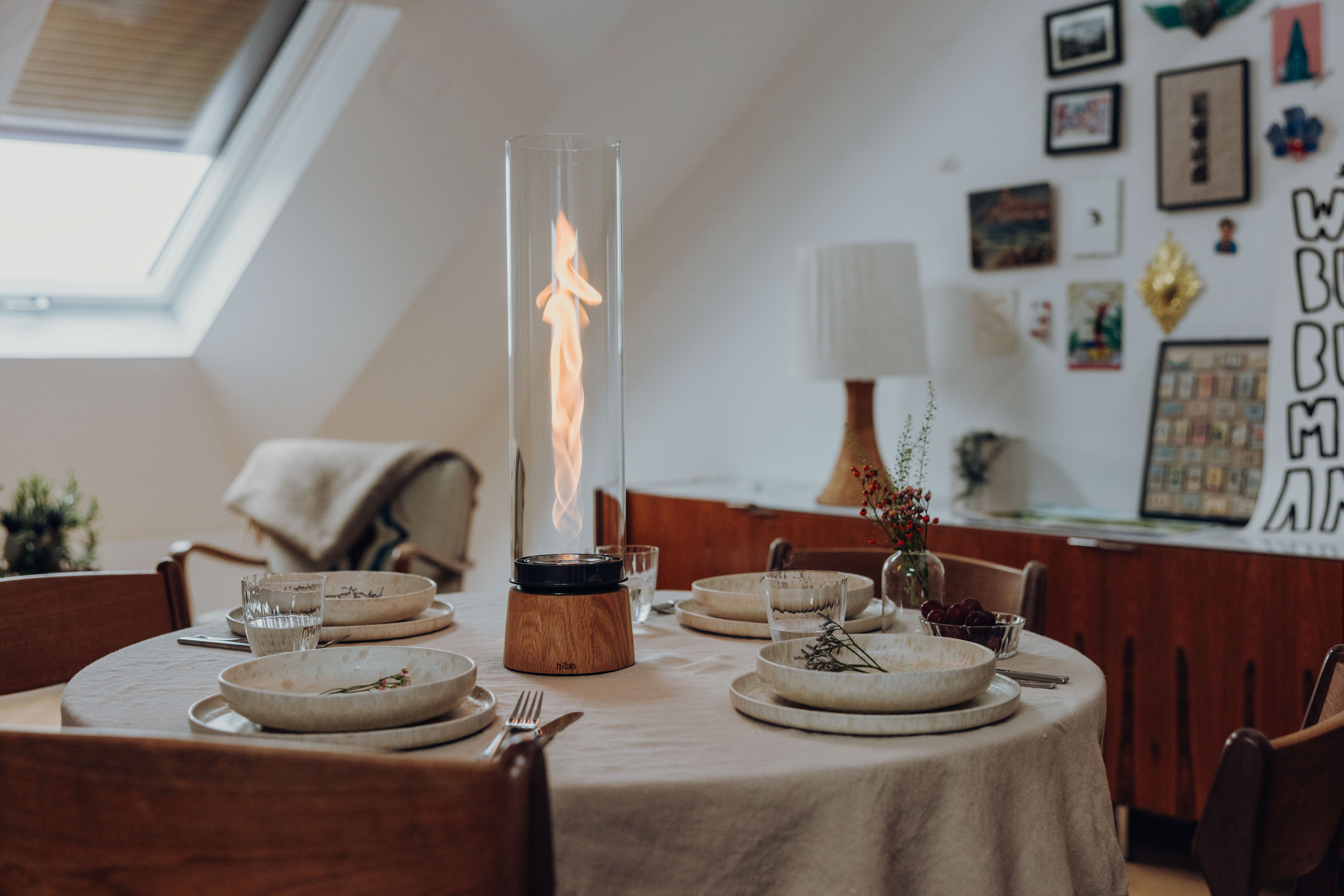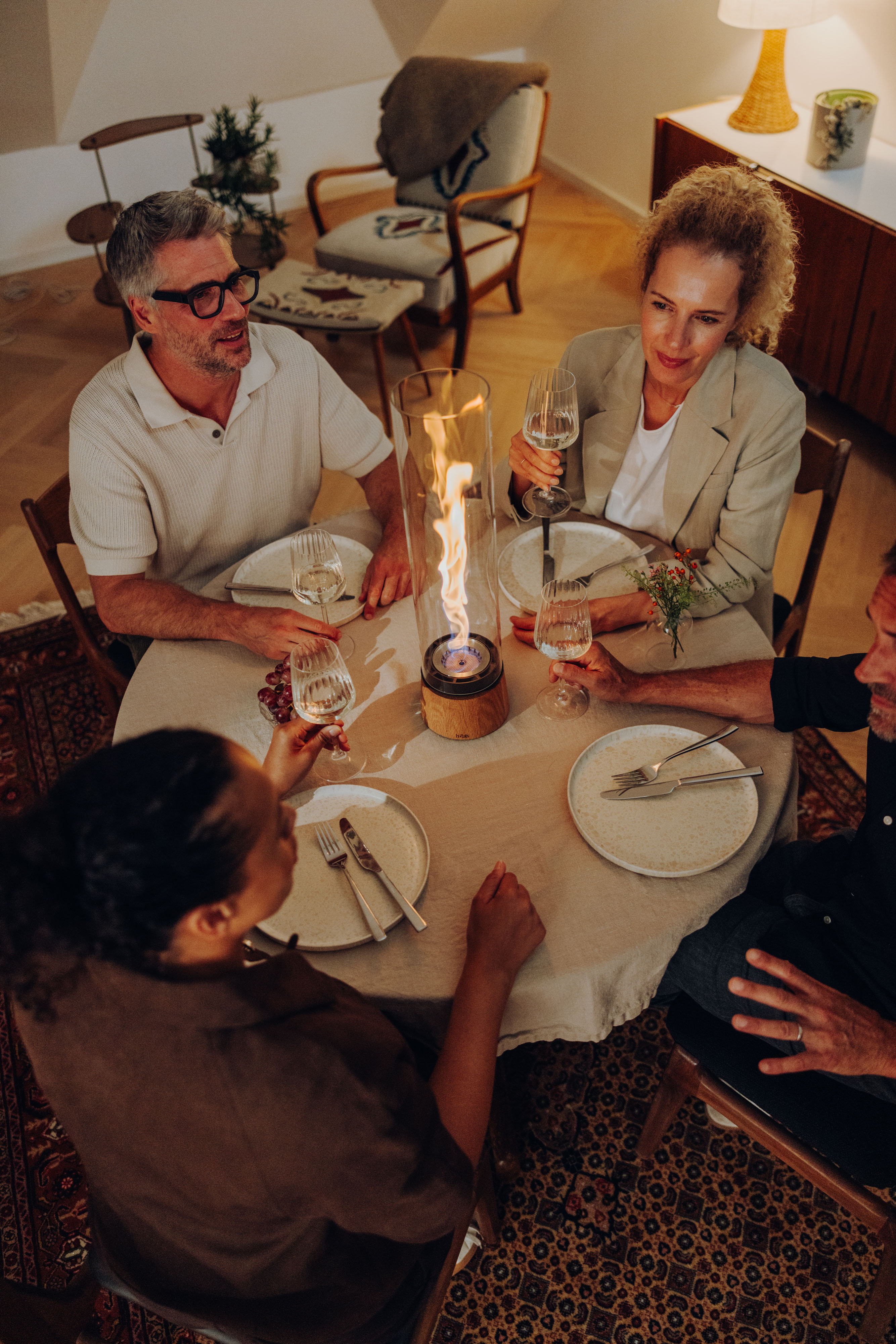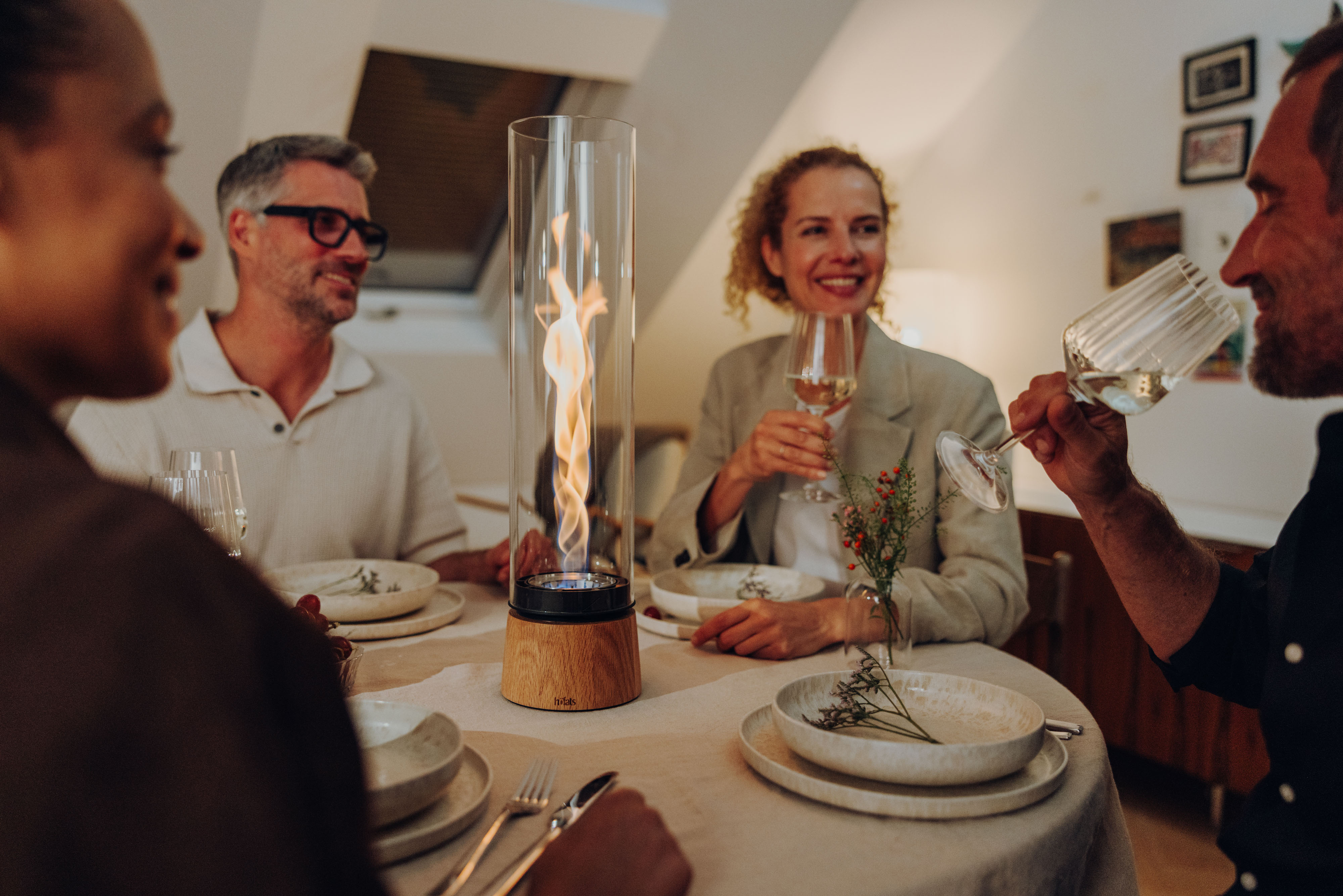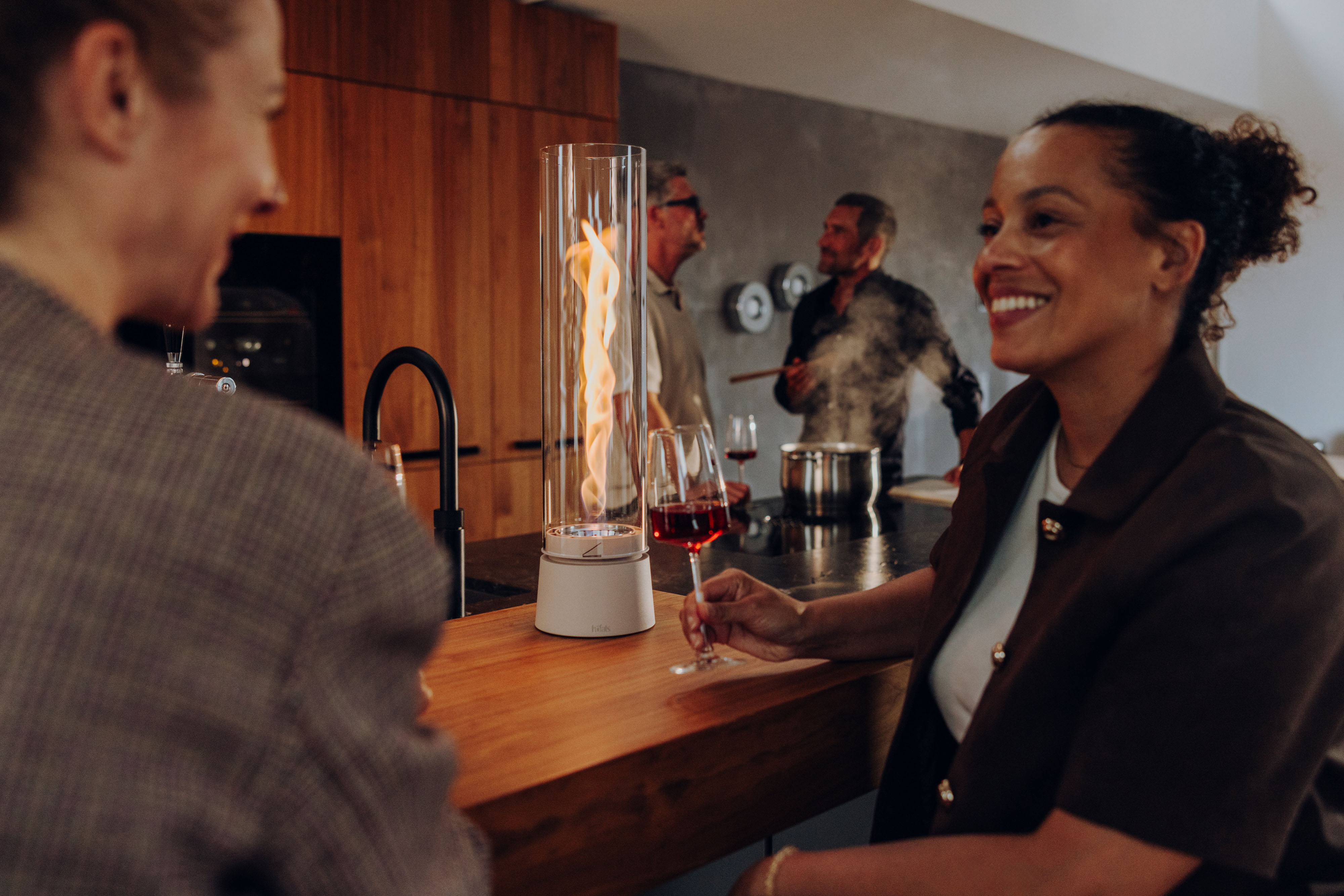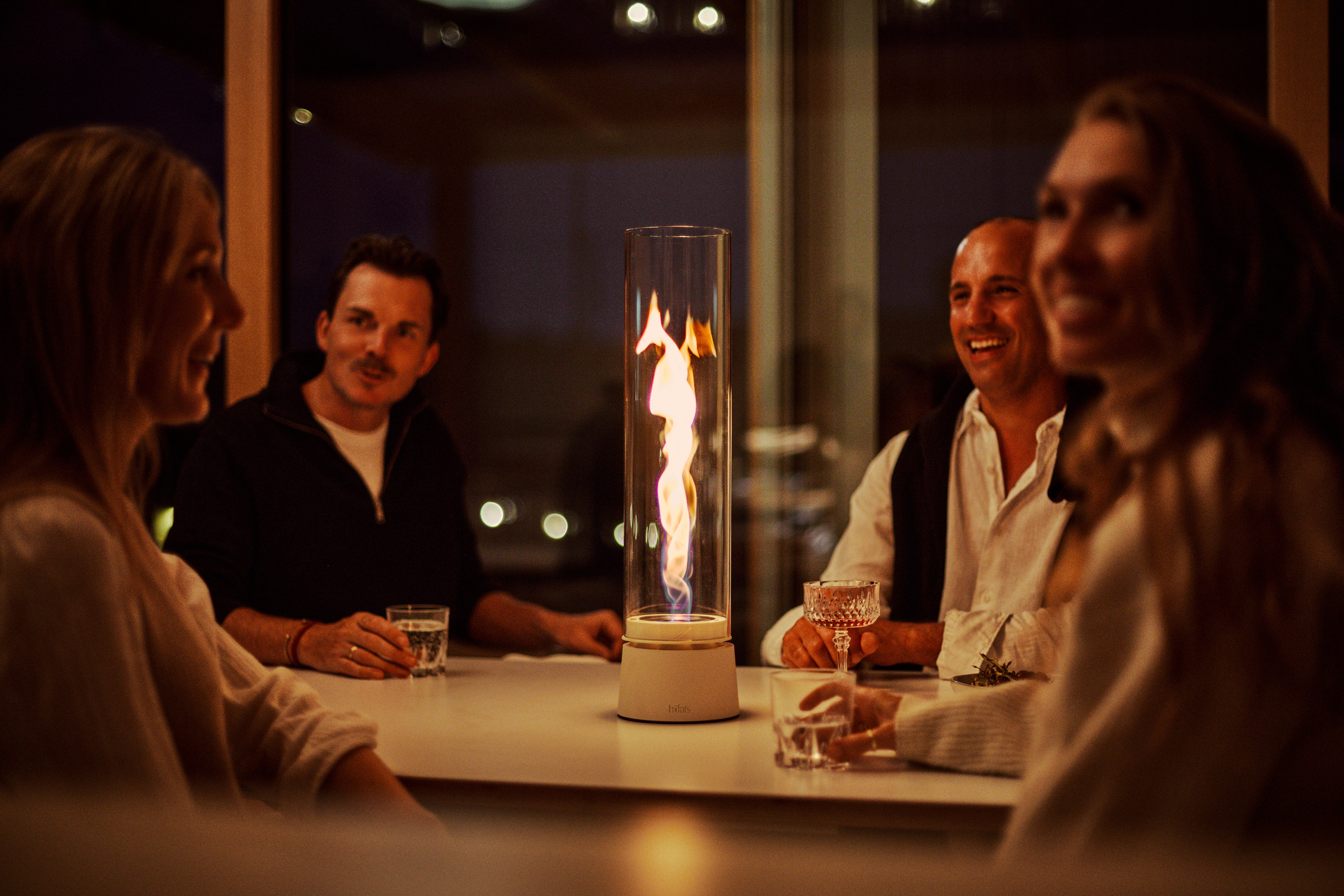 Als Allrounder unter den Lifestyle-Accessoire macht sich Spin air vor einer Naturkulisse im Garten, auf der Terrasse oder dem Balkon ebenso gut wie im Indoor-Bereich. Das lodernde Flammenspiel im hochwertigen Glaszylinder erinnert an eine sich fortwährend wandelnde Skulptur, die über Stunden geruchlos und rauchfrei genossen werden kann. Bei so viel leidenschaftlichem Wirbel bildet die schlanke, geradlinige Form von Spin air den wunderschön kontrastreichen wie sicheren Rahmen für das Feuer.