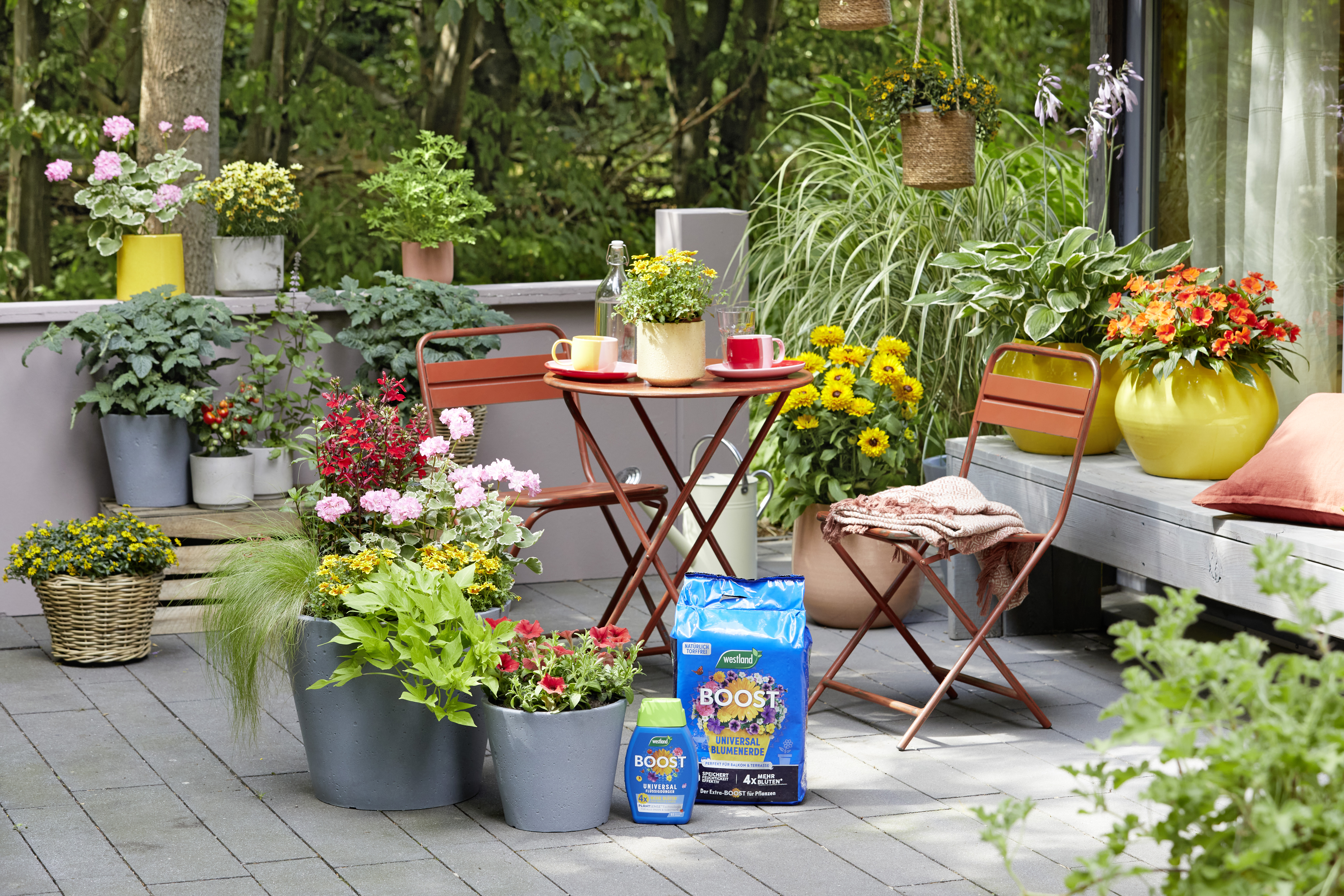 Der Name ist Programm: Mit der neuen Boost Universal Erde von Westland erhalten Balkon-, Topf- und Kübelpflanzen den Boost für prächtige Blüten in intensiven Farben. Die torffreie Universal Erde speichert Feuchtigkeit effektiv und schützt die Pflanzen vor Austrocknung. Zusätzlich unterstützt die gleichmäßige Wasserverteilung das Pflanzenwachstum. Dank der leichteren Wiederbenetzbarkeit wird das Gießwasser auch nach Trockenphasen besser aufgenommen und an die Pflanzen weitergegeben.