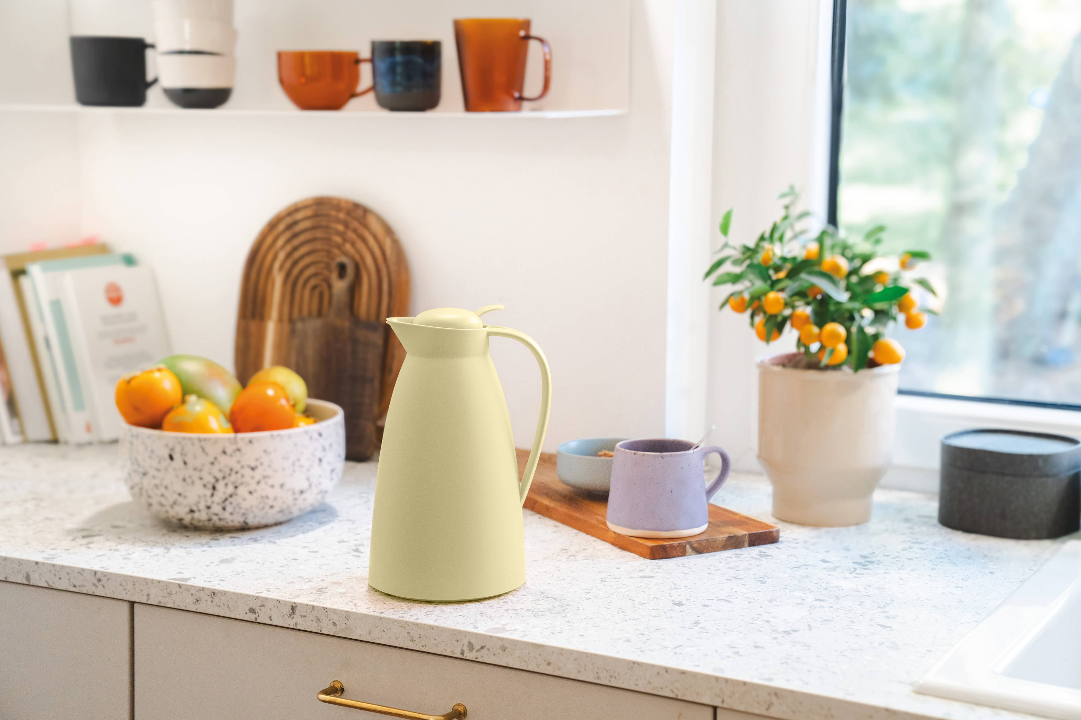 Zum Erwachsenwerden oder zum Jungbleiben: Die Isolierkanne Eco von alfi in den Trendfarben soft blue, dark lilac und soft yellow zieht ebenso unkompliziert in die erste eigene Wohnung ein, wie sie Frische in etablierte Einrichtungen von Kaffee- und Tee-Fans bringt. Unabhängig vom Ort präsentiert sich die Isolierkanne dabei erfreulich preisgünstig und funktional. Eco serviert neben formschönem Design auch puren Genuss dank AromaSafe und bis zu 12 Stunden heiße und 24 Stunden kalte Lieblingsgetränke.